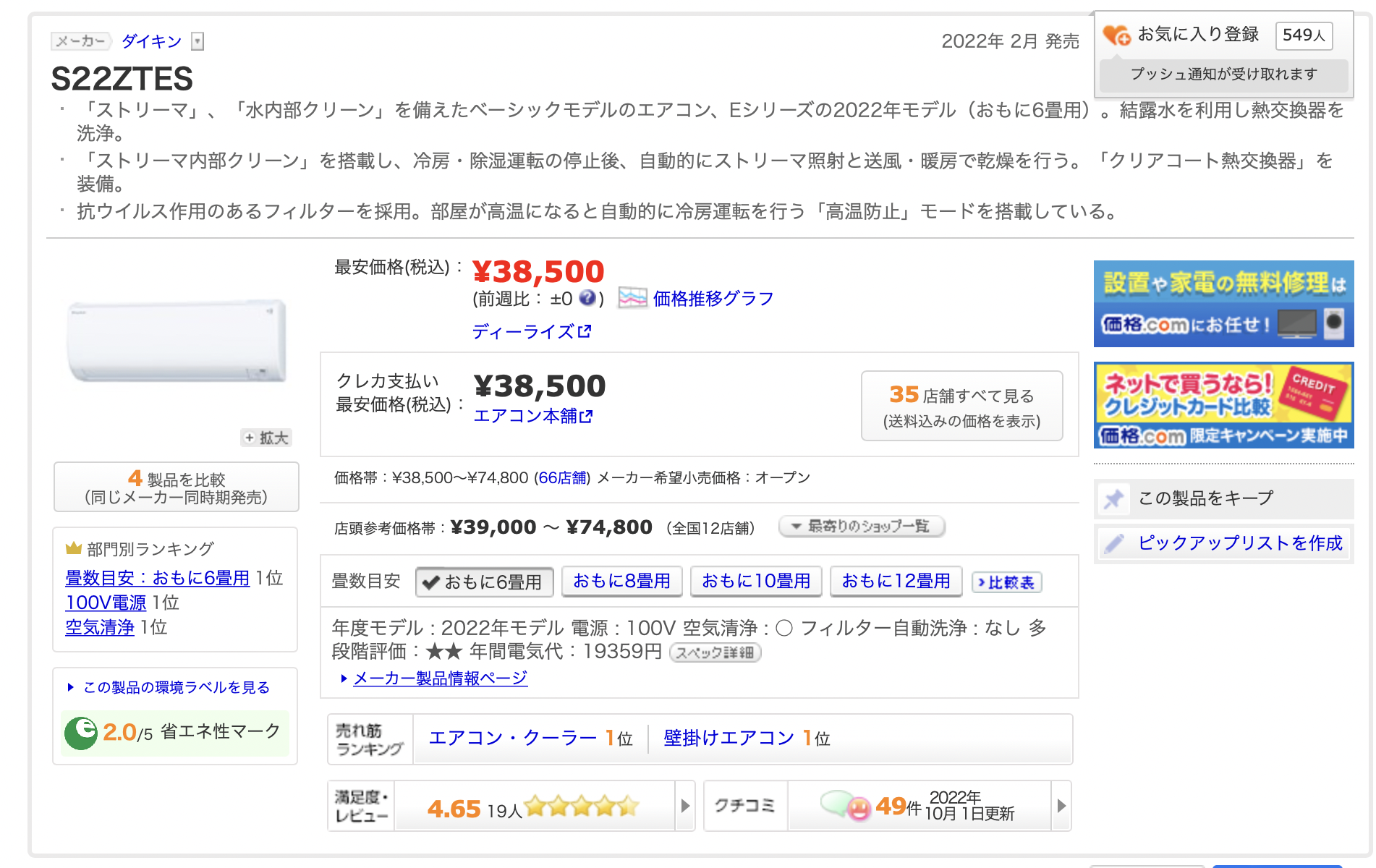 しかも、これは6畳用の最も安い機種で比較してますから、これが上位機種とか大きな機種になるとその価格差は3〜4万どころではなく、平気で5〜6万円とか変わることがあります。