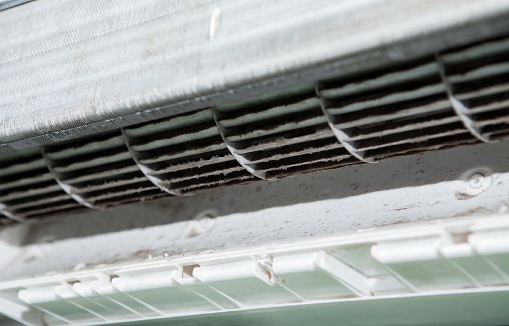 さらに、熱交換器という部品もあって、「熱」を「交換」、つまり、冷房ならお部屋の空気を冷やす部品なのですが、この部品がホコリなどで詰まってしまうと、お部屋の空気の通り道が塞がれてしまい、お部屋の熱がうまく循環しなくなり、冷房の効果が半減してしまうという現象も起きます。