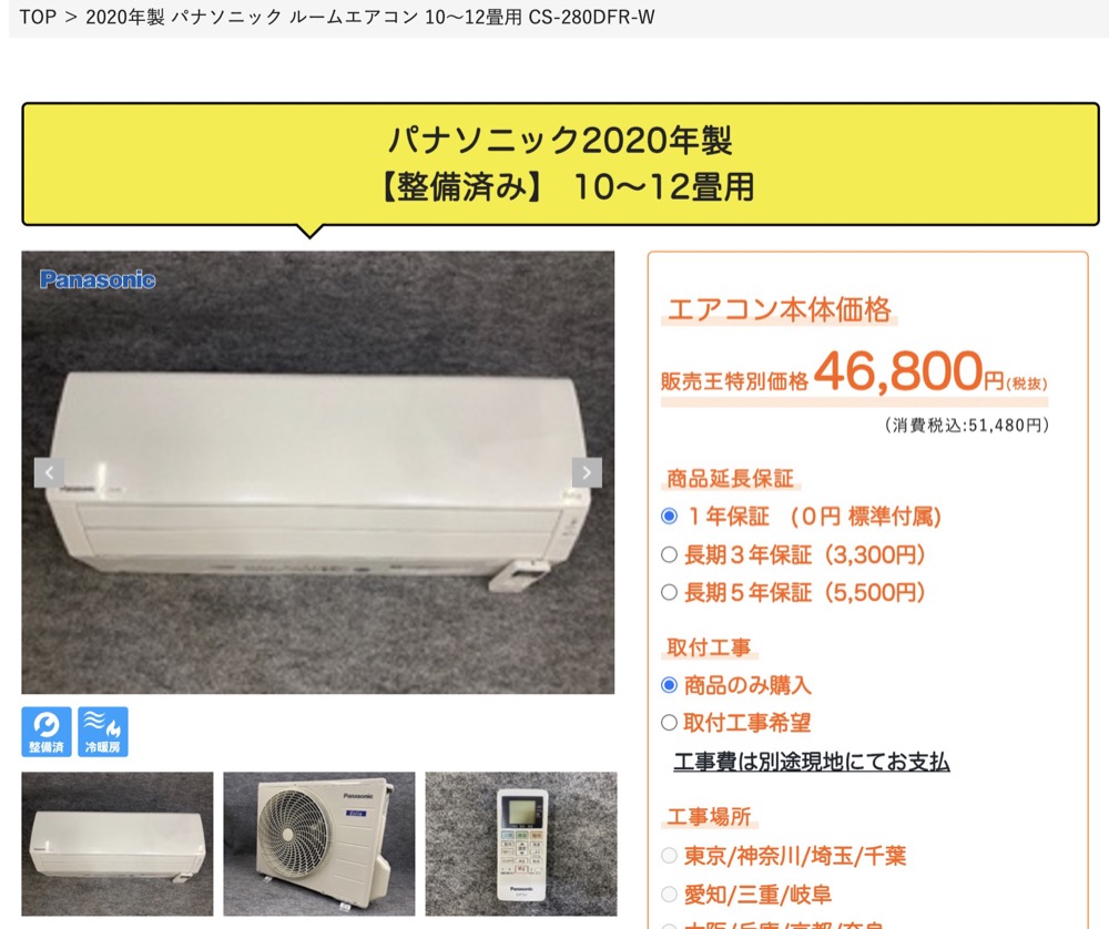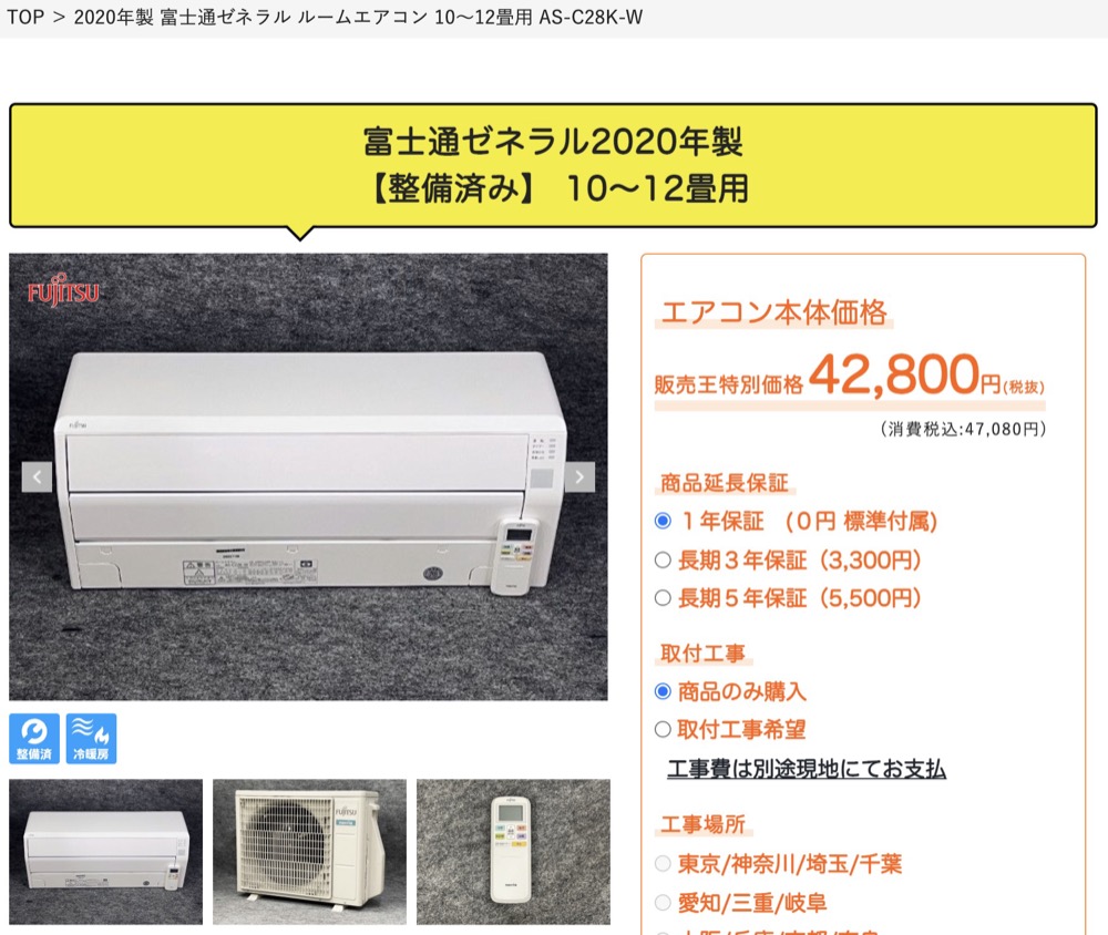 そのサイト内では、3年落ちのエアコンが新品の時の半額くらいで販売されていました。