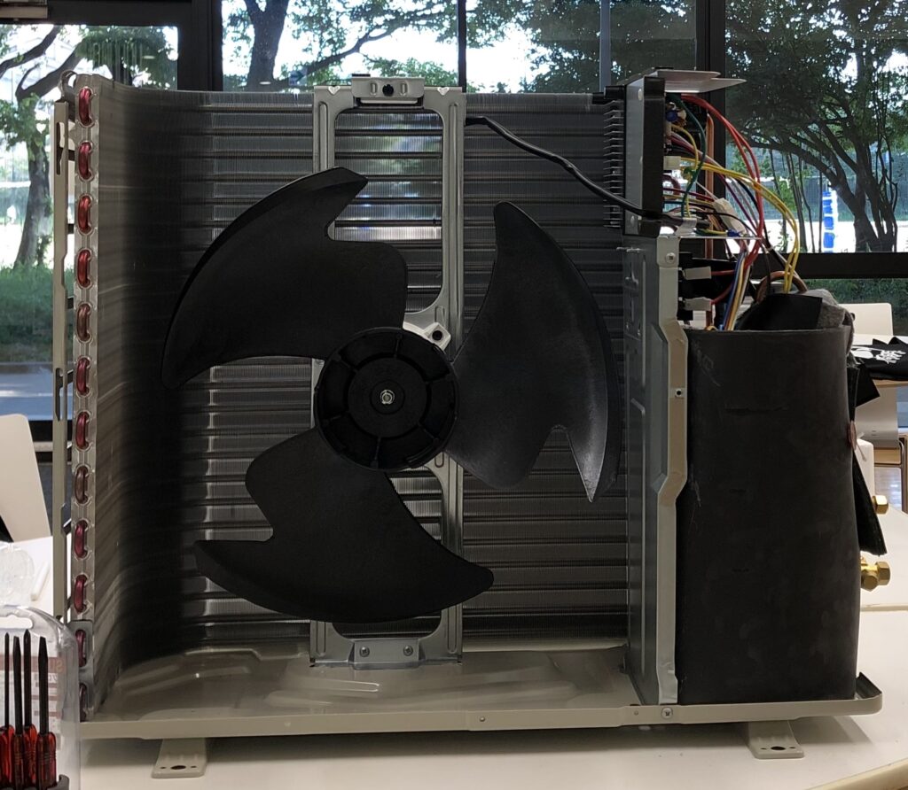 ご覧の通り、室外機は金属部品の塊で、アルミや銅を多く使用しています。