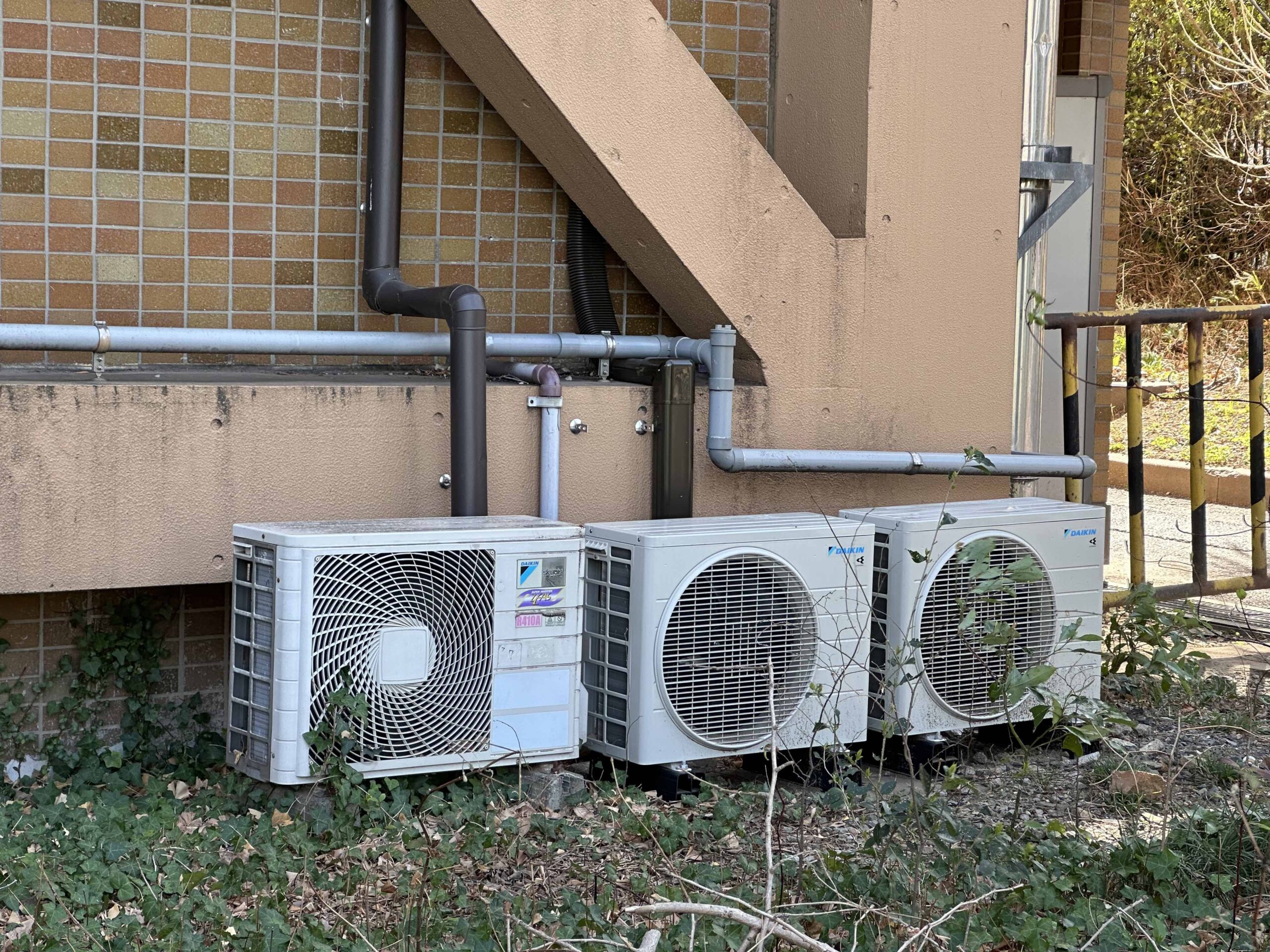 室外機を1台にまとめられる反面、コンプレッサーや各種電子弁など室外機内部にある主要部品が故障するとシステム全体で異常が発報され運転できなくなります。すぐに修理できれば1週間以内に復旧できることがほとんどですが、真夏ならかなりの痛手です。