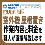 2階1階おろしの場合ではハシゴを使っての高所作業になりますし、屋根置きの場合は屋根に上がりますし、壁面も公団吊も取り外すのに大変な作業になりますので、「高所作業代も込み」ということで標準の取外し工事よりも3000円ほど割高に料金設定されているところが多いです。