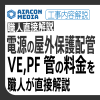 こちらの屋外露出配線だと、電線が紫外線や雨風に晒されるので、「屋外保護配管」というものを使います。