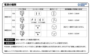 逆にいえば、15Aのコンセントに20Aのプラグを挿すことはできませんので、その場合には購入されるエアコンのコンセント形状を確認するか、もしくはコンセント交換も視野に入れておいた方がいいということになります。